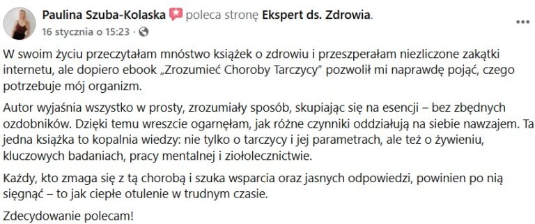 Od tego czasu pomogłem wielu kobietom uporać się z problemami hormonalnymi, metabolicznymi i chorobami tarczycy, pokazując, że zdrowie można odbudować krok po kroku, wprowadzając świadome, praktyczne zmiany w diecie, stylu życia i nawykach.